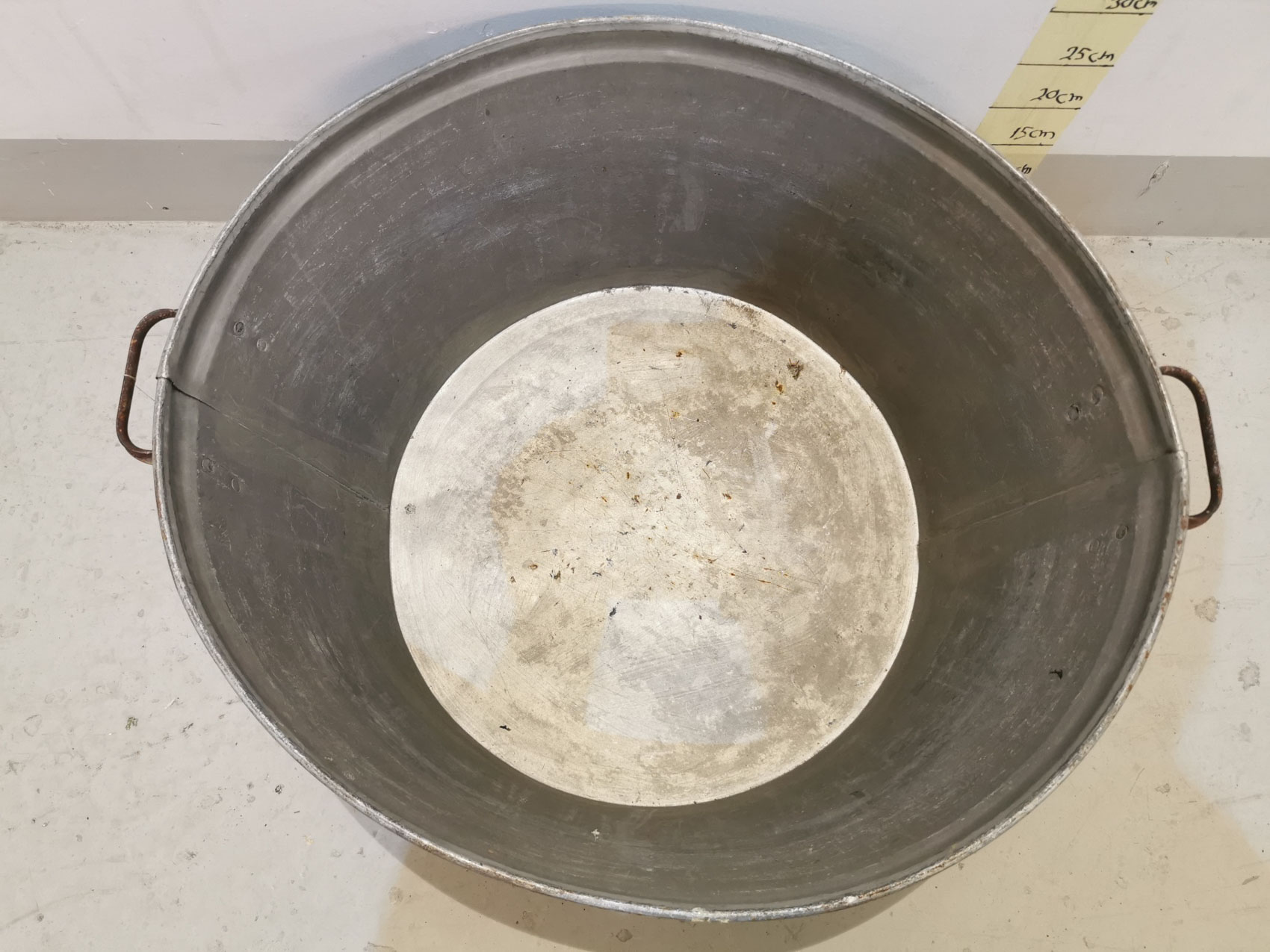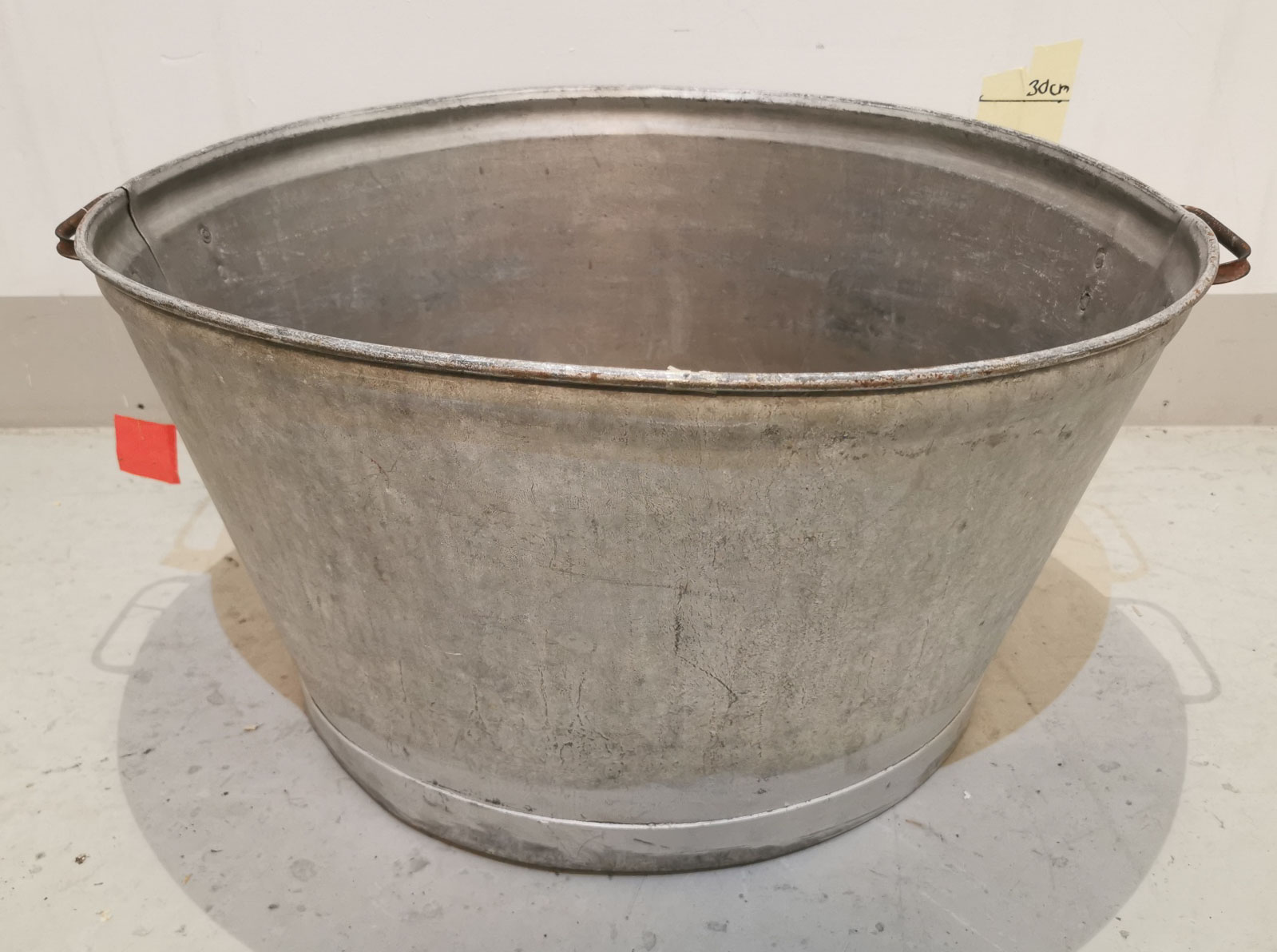 Zinkkipata, 1900-luvun alkupuoli, erinomainen takkapuille, kukille, ym, Halkaisja 63 cm, korkeus 32 cm, myydään ilman puita.